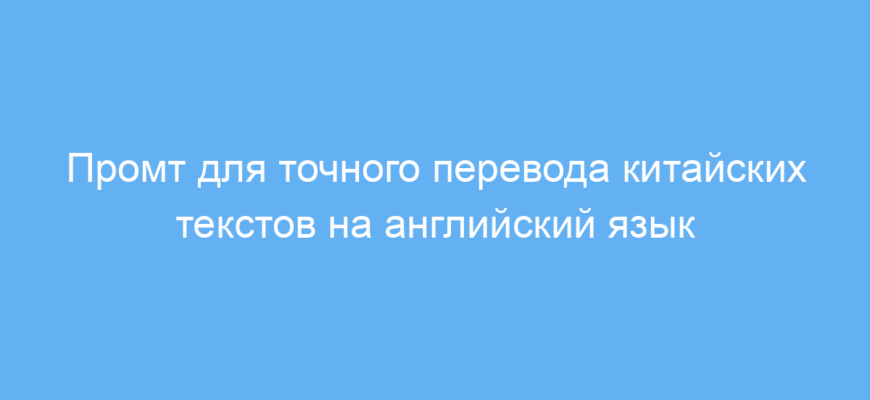 Этот промт помогает получить грамотный и точный перевод китайских текстов на английский, сохраняя все нюансы исходного материала и адаптируя его под нужды целевой аудитории. Такой облегчённый и структурированный подход экономит время и снижает риск ошибок, делая перевод качественным и профессиональным.