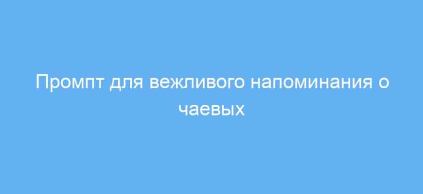 Промпт работает просто: он формулирует вежливое предложение учесть чаевые при пользовании сервисом. Искусственный интеллект использует эту фразу, чтобы генерировать корректные, дружелюбные и ненавязчивые сообщения.
