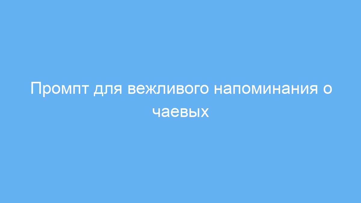 Проблема, которую решает этот промпт, — деликатное обращение с просьбой о чаевых, без нагнетаний и давления. Такой подход помогает сохранить положительный опыт пользователя и повысить вероятность получения чаевых.