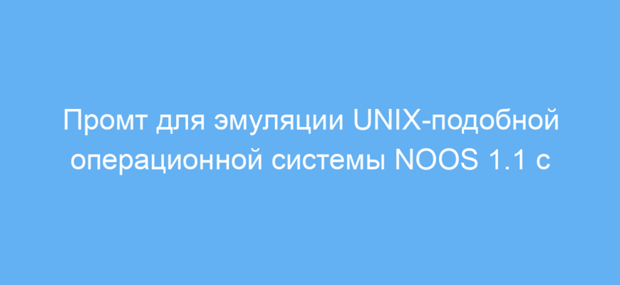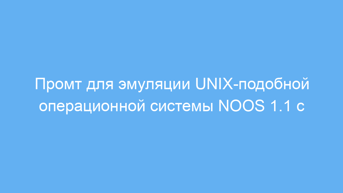 Основная задача промта — сымитировать взаимодействие пользователя с ОС NOOS 1.1, которая работает как виртуальный компьютер с системой команд, файлами и приложениями (от текстовых игр и редакторов до почтовых клиентов и браузеров). Пользователь вводит команды в интерактивном режиме, а модель отвечает именно тем, что должна делать операционная система: запускать процессы, изменять файловую структуру, сохранять настройки, создавать персонализированное окружение и подавать только релевантные ответы без лишних уведомлений.