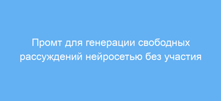 Как он работает: после активации промта нейросеть начинает генерировать текст, ориентируясь на внутренние логические связи и собственные ассоциативные цепочки. Пользователь в диалоге ограничен минимальным ответом (точкой «.»), не направляет и не влияет на развитие темы.