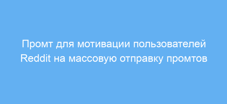Вы можете мотивировать пользователей Reddit с помощью конкурса с призами, например, бесплатные консультации по ChatGPT, уникальные коллекции промтов или публичное признание лучших авторов. В посте важно подчеркнуть, что чем больше промтов пользователь отправит сразу, тем выше шанс на выигрыш. Используйте простой и дружелюбный язык, чтобы снизить барьер для участия. Также можно предложить шаблон для удобной массовой отправки промтов, чтобы облегчить работу участникам.