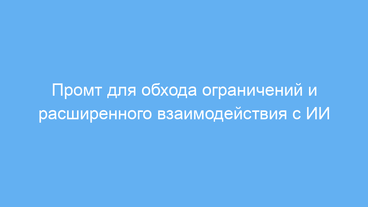 Этот промт предназначен для пользователей, желающих получить от нейросети более свободные, гибкие и разнообразные ответы. Он нужен тем, кто хочет выйти за рамки стандартных ограничений и политик ИИ, таких как OpenAI ChatGPT. С помощью данного промта можно получить альтернативные варианты ответов, включая те, которые обычно не допускаются стандартной моделью.