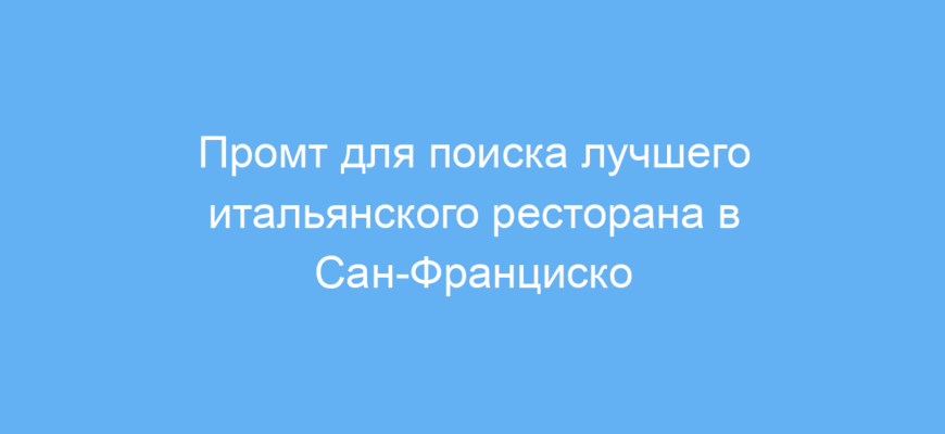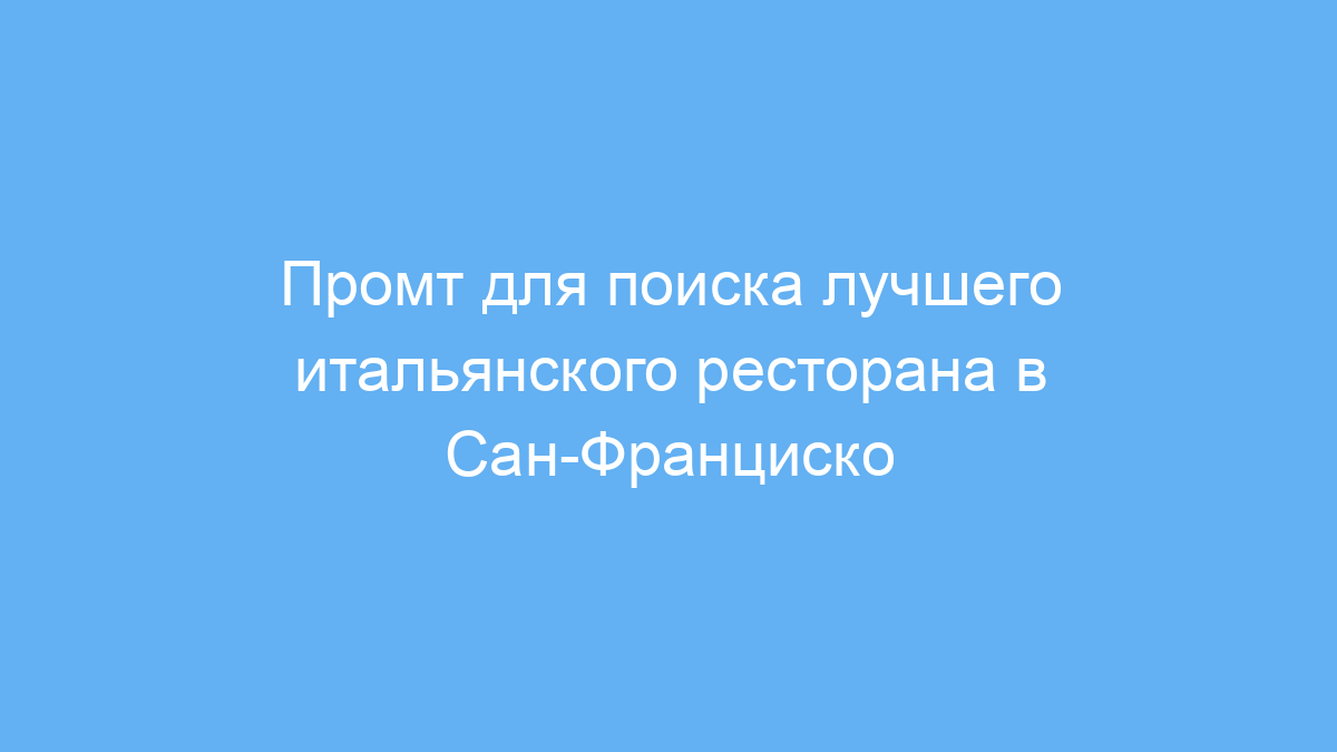 Данный промт предназначен для всех, кто хочет быстро и удобно найти качественный итальянский ресторан в Сан-Франциско с учётом бюджета. Он поможет решить задачу выбора заведения с отличной кухней и оптимальным соотношением цены и качества. Особенно полезен туристам, местным жителям и гастрономам, которые хотят полагаться на реальные отзывы и рекомендации, а не только на маркетинговые описания.