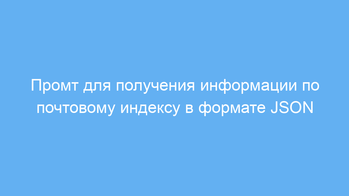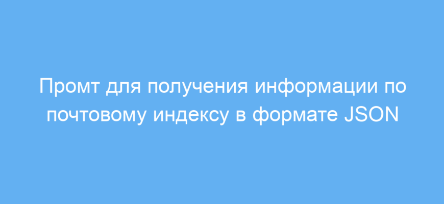 Промт работает следующим образом: вы передаете нейронной сети один или несколько почтовых индексов и страну, после чего она возвращает информацию в стандартизированном формате JSON. В этом формате удобно хранить и обрабатывать данные, например, для интеграции с приложениями, сайтами или аналитическими инструментами.