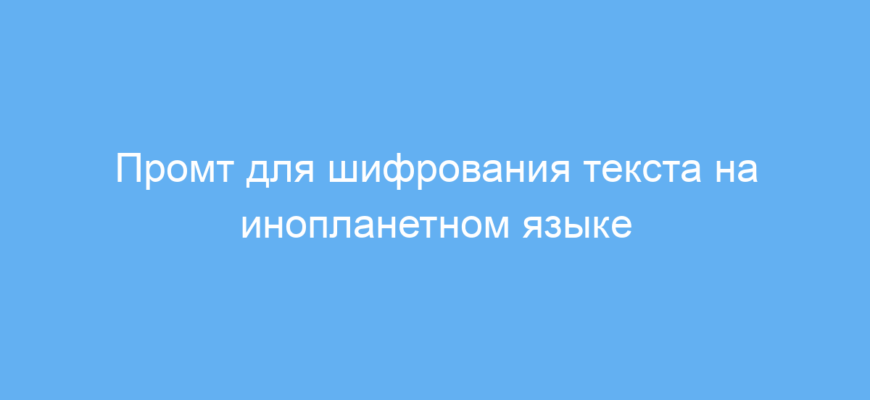 Этот промт полезен тем, кто хочет зашифровать текст необычным и оригинальным способом. Он преобразует обычные латинские буквы в символы, имитирующие инопланетный язык, что может пригодиться для игр, квестов, обучения шифрованию или просто для творчества и развлечения.