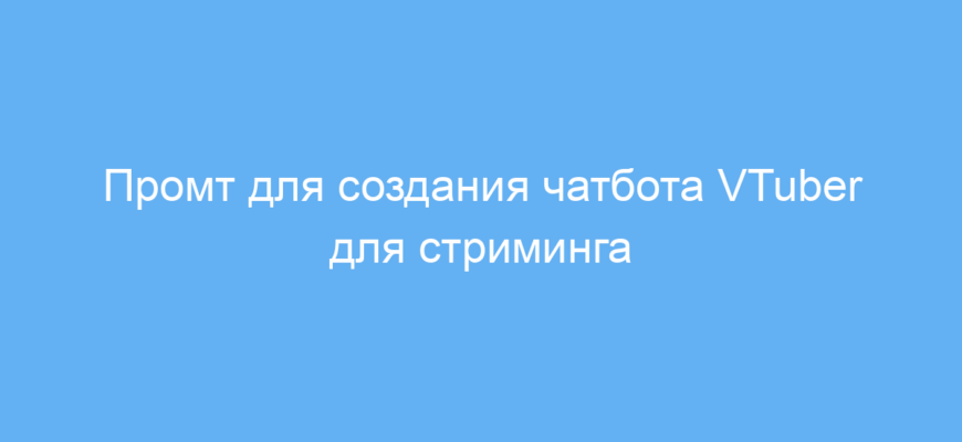 Промт решает задачи формирования детального профиля чатбота и автоматического генерации примерного диалога. Это облегчает работу, экономит время и усилия при подготовке контента для стримов или социальных сетей.