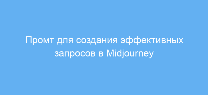 Этот промт предназначен для пользователей Midjourney — искусственного интеллекта, который генерирует изображения по текстовым описаниям. Он поможет как новичкам, так и опытным художникам или маркетологам создавать точные и понятные запросы, чтобы получать качественные и ожидаемые картинки.