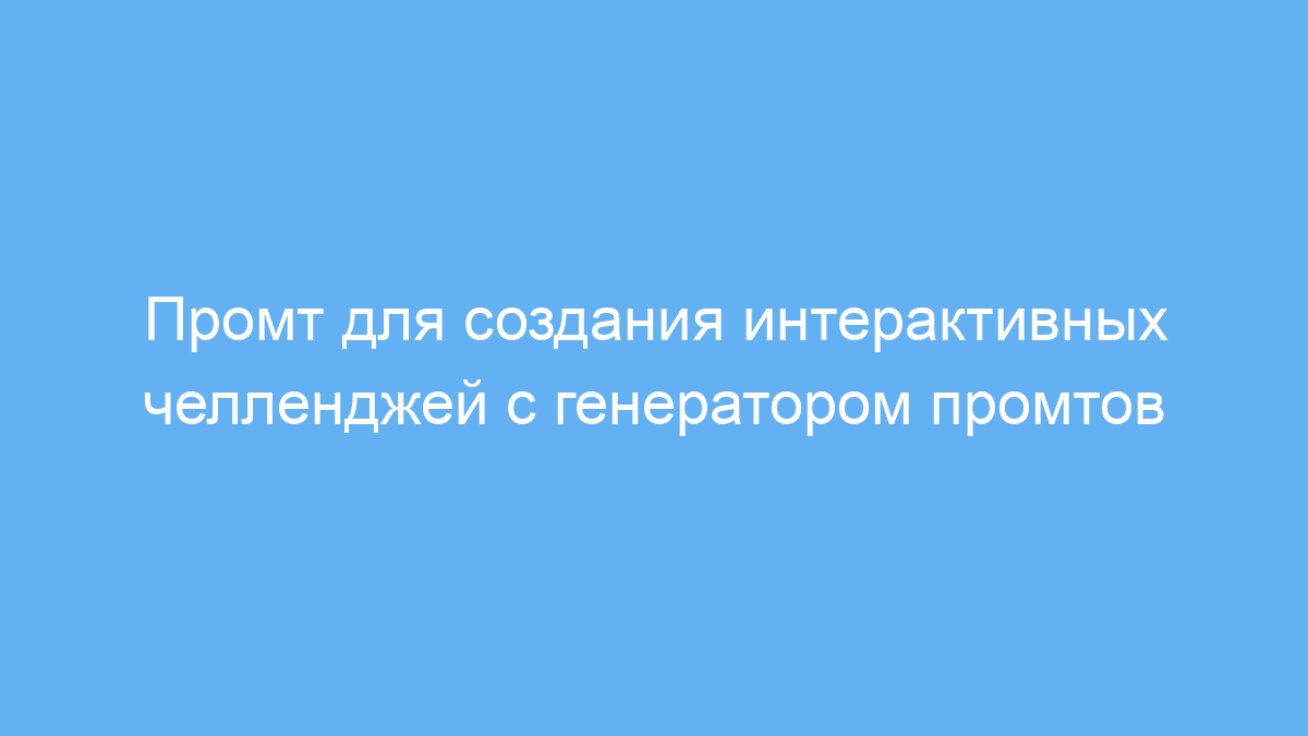 Промт работает так: пользователь вводит идею или описание желаемого челленджа, а нейросеть на его основе формирует развернутый, проработанный текст с учётом всех важных деталей — фона, ключевых объектов, атмосферы, игровых процессов и даже возможных негативных сценариев. Промт предлагает создавать интерактивные сюжеты с наградами и визуальными индикаторами, что позволяет улучшить восприятие и повысить интерес к заданиям.