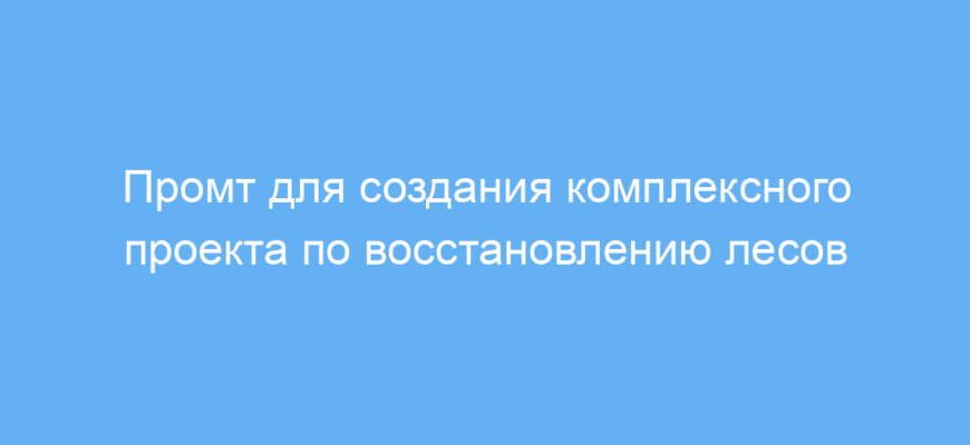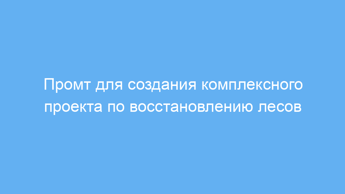 Этот промт создан для специалистов и активистов, которые занимаются экологическими проектами, в частности — восстановлением лесов в районах, пострадавших от вырубки. Он помогает структурировать работу, учитывая особенности территории, местное законодательство и международный опыт. Используя этот промт, пользователь получает профессиональные рекомендации и целый пакет документов для успешного запуска и продвижения экологической инициативы.