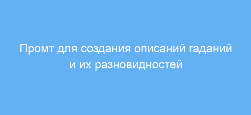 Промт помогает быстро создавать разнообразные тексты о популярных и редких методах гадания. Он структурирует информацию, экономит время на поиске данных и позволяет сфокусироваться на развитии контента, а не на сборе фактов. Особенно полезен для создания обучающих, аналитических и развлекательных материалов по эзотерике.