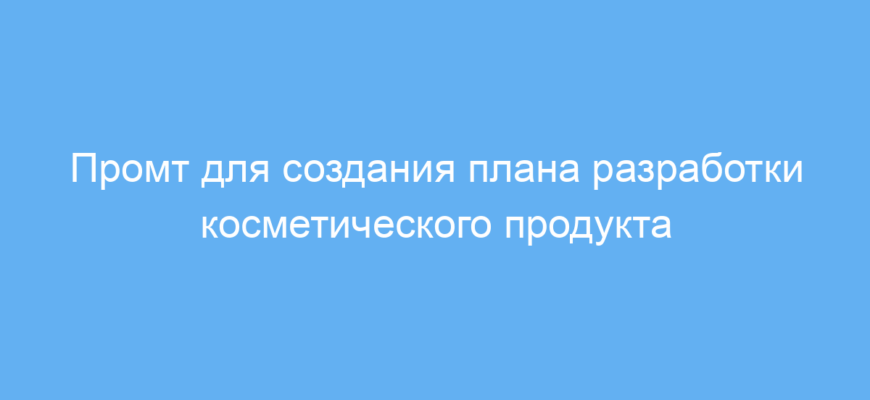 Промт помогает быстро сформировать полный, логичный и практичный план разработки косметического продукта. Он экономит время, упорядочивает этапы и задаёт структуру работы. Такой инструмент особенно полезен при запуске новых проектов или при отсутствии опыта.