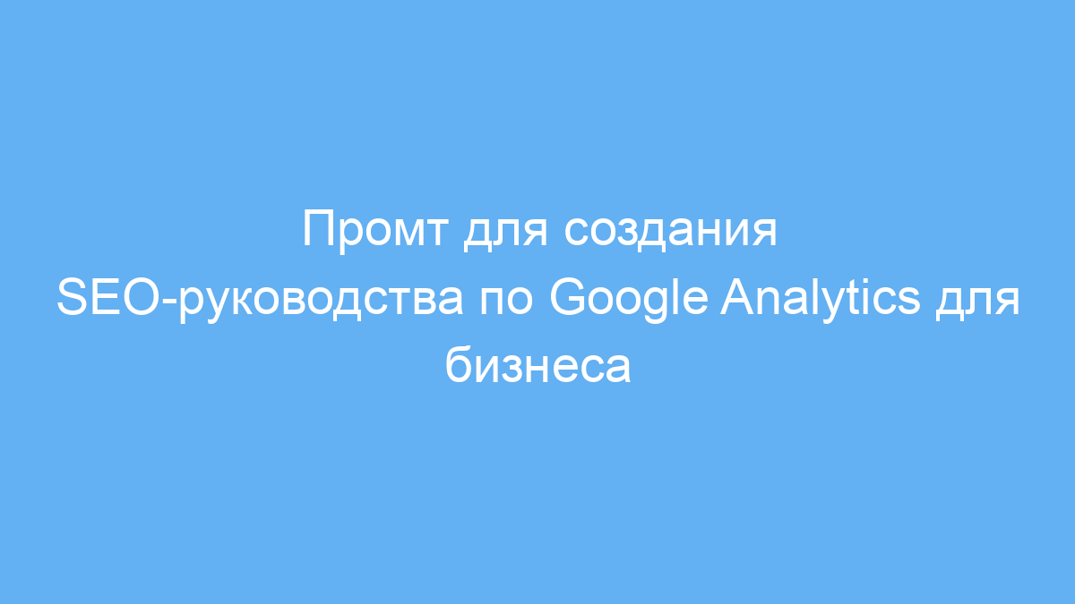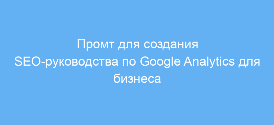 на нужный язык и название компании для получения релевантного контента. - Используйте данный промт для создания полноценных гайдов, обучающих статей, инструкций и презентаций по Google Analytics в контексте SEO.