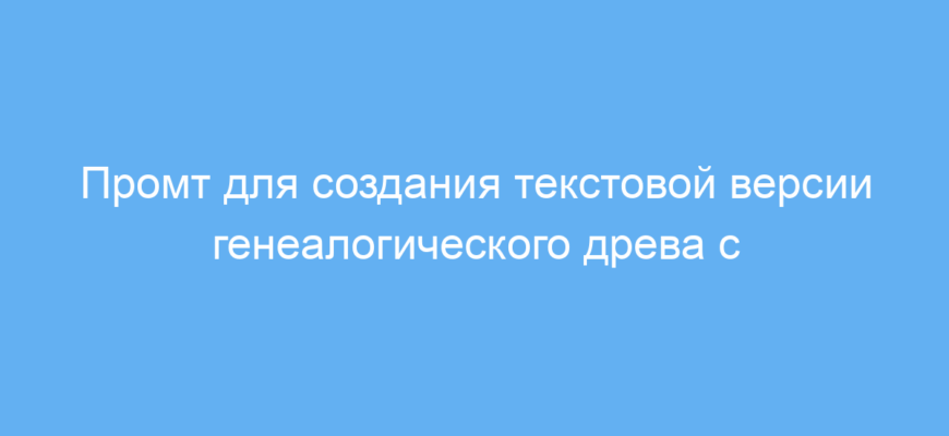 Промт берет на вход имя человека, вокруг которого строится дерево, и последовательно выстраивает родственные отношения с подробной информацией о каждом члене семьи: имя, дата рождения, значимые события и достижения. Особое внимание уделяется и описанию типов связей — браки, разводы, усыновления и другие ситуации. Благодаря markdown-формату полученный результат легко можно использовать в документах, блогах или на сайтах с поддержкой этого синтаксиса.