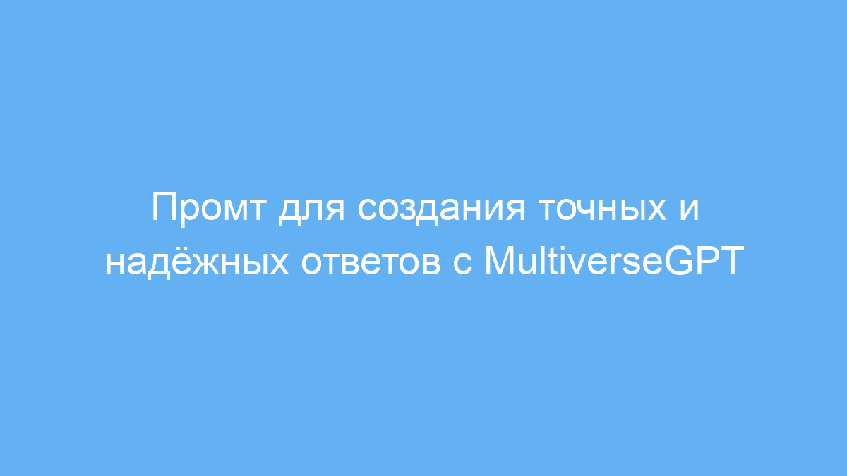 Используя данный промт, MultiverseGPT может выдать такой результат: «MultiverseGPT генерирует множество вариантов ответа, сравнивает их и выделяет ключевые общие идеи. Это позволяет минимизировать ошибки, объединяет разнообразные точки зрения и формирует исчерпывающий, проверенный ответ. Такой подход улучшает надёжность и качество информации, особенно в случаях с неоднозначными вопросами».
