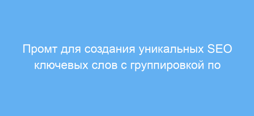 Данный промт значительно упрощает и ускоряет процесс подбора ключевых слов с учётом их поискового намерения, что улучшает качество SEO и помогает точнее таргетировать аудиторию. Вы получаете структурированный, удобный для анализа список ключевых слов для подготовки контента и настройки рекламных кампаний.