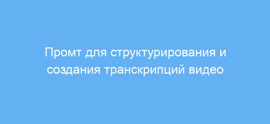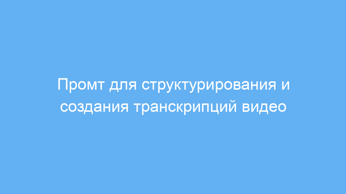 Этот промт предназначен для тех, кто работает с длительными видео и хочет быстро получить удобную для чтения и анализа текстовую версию. Особенно он полезен блогерам, журналистам, преподавателям и маркетологам, которым нужно систематизировать информацию из видео без лишних деталей.
