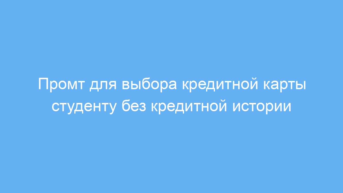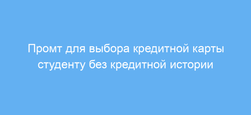 Этот промт предназначен для тех, кто хочет получить совет по выбору кредитной карты, особенно если у пользователя нет кредитной истории. Чаще всего это студенты или молодые люди, которые только начинают пользоваться кредитными продуктами.