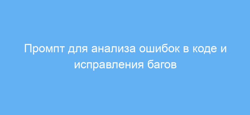 Использование данного промпта позволяет быстро и эффективно находить и исправлять ошибки в программном коде. Это сокращает время на отладку и помогает лучше понимать причины сбоев. Инструмент особенно полезен при изучении программирования и работе с чужим кодом.