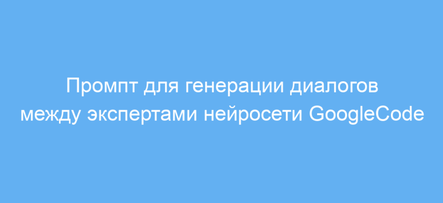 Промпт задаёт роли пяти экспертов – ведущего, программиста, вопросителя, критика и тематического специалиста. Каждый из них делает по одному сообщению в диалоге, затем приводится пример кода, список возможных следующих шагов и запрос на продолжение. Такой формат помогает шаг за шагом детализировать проект и контролировать ход обсуждения.