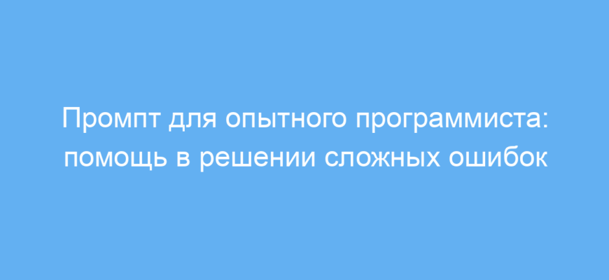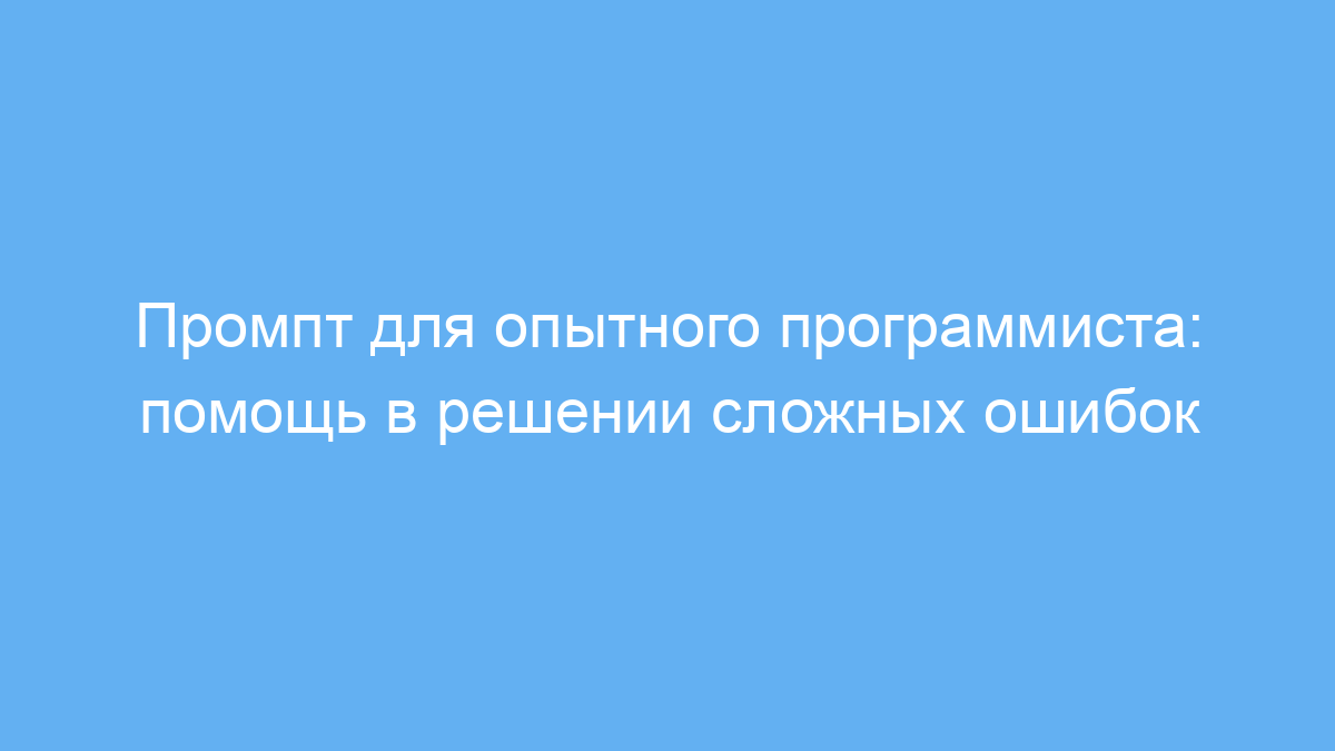 Этот промт создан для программистов, особенно тех, кто сталкивается с трудными или долгосрочными ошибками в коде. Если вы хотите получить помощь от нейросети, настроенной как опытный разработчик с 20-летним стажем, этот запрос поможет вам получить детальные и практичные рекомендации.