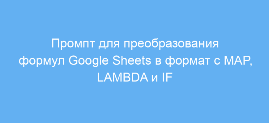 Задача промпта — автоматически преобразовывать привычные формулы с проверками и логикой в современный формат с функцией MAP, которая применяет заданную лямбда-функцию ко всему диапазону. Использование IF внутри LAMBDA обеспечивает корректную обработку пустых значений, предотвращая ненужные вычисления и ошибки.