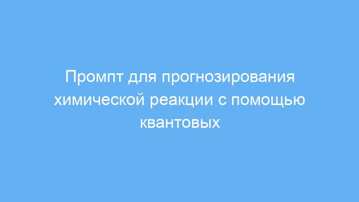 Промпт помогает создать программу, которая учитывает квантовые свойства частиц и позволяет смоделировать вероятные пути прохождения реакции, а также её ключевые свойства. Это облегчает понимание химического процесса и помогает принимать решения в исследованиях или учебе, делая прогнозы более точными и быстрыми.