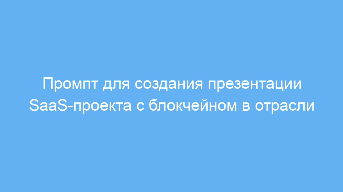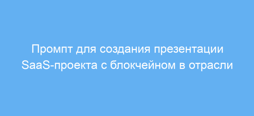 Используя данный промпт, вы существенно ускорите подготовку комплексных презентаций SaaS-проектов с элементами блокчейн-технологий. Промпт структурирует вашу идею, выделяя ключевые аспекты — как коммерческие, так и технические. Это особенно ценно при работе с заказчиками или инвесторами, которым нужна понятная и информативная подача.