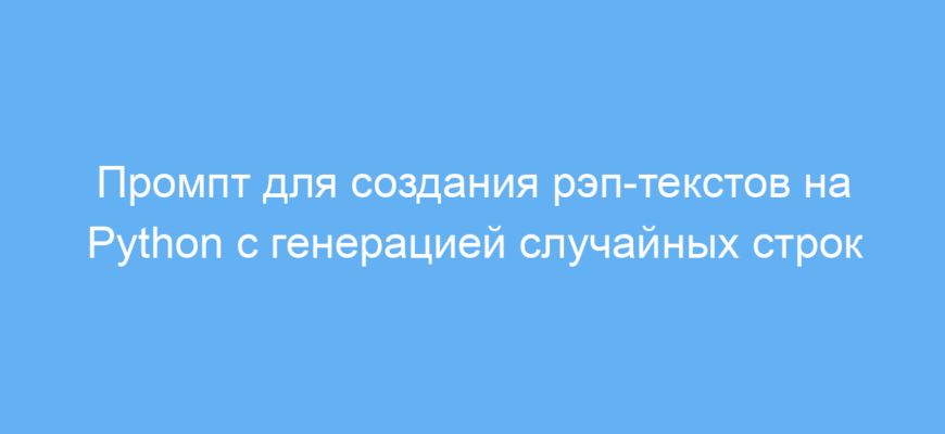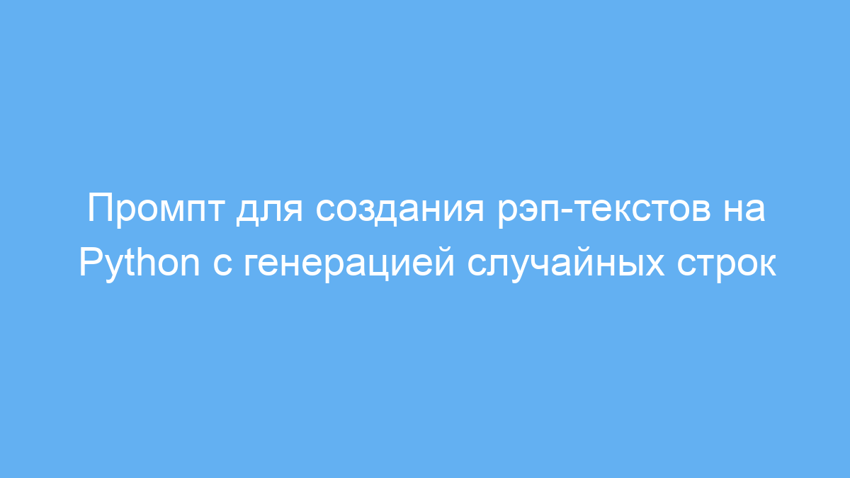 Этот промпт предназначен для начинающих программистов, музыкантов и авторов текстов, которые хотят быстро создавать тексты рэп-песен с помощью простой программы на Python. Он подходит для тех, кто изучает программирование и хочет применить навыки на практике, а также для творческих людей, желающих получить вдохновение без длительного мозгового штурма.