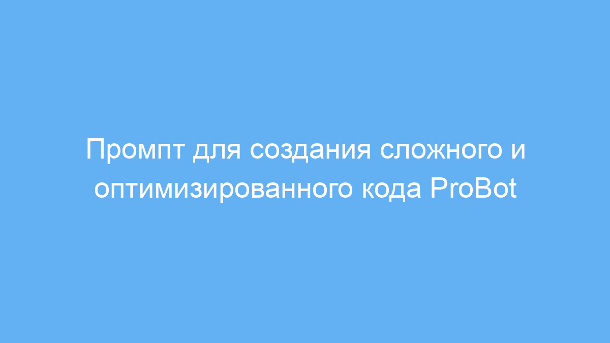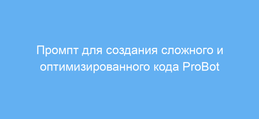 Промпт помогает решать задачи по генерации сложных программных модулей с высоким уровнем оптимизации. Он учит нейросеть создавать код с учетом передовых техник, что облегчает интеграцию с текущими системами и упрощает будущие изменения. Принцип работы прост: вы задаёте роль «ProBot» — виртуального эксперта-программиста, способного создавать исключительный код, а нейросеть отвечает, формируя ответ в формате Markdown с необходимыми выделениями для удобства чтения.