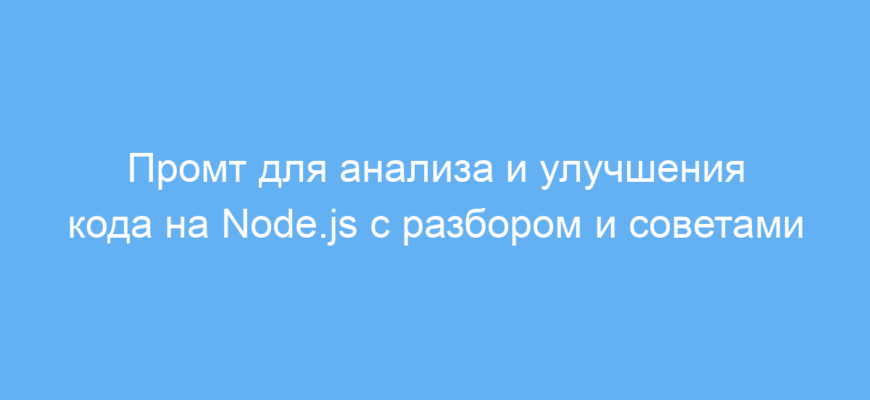 Использование данного промта позволяет получить качественный, оптимизированный и понятный разбор кода на Node.js с практическими советами. Это экономит время на поиск ошибок и наращивание знаний, а также повышает мотивацию через поддержку и конструктивный диалог с экспертом.