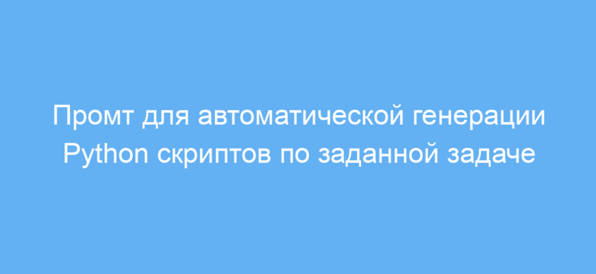 Этот промт существенно упрощает процесс написания специализированных Python-скриптов, экономит время и снижает порог входа для тех, кто не знаком с программированием. Он обеспечивает аккуратный, хорошо структурированный и комментированный код, который легко модифицировать и использовать для реальных проектов.
