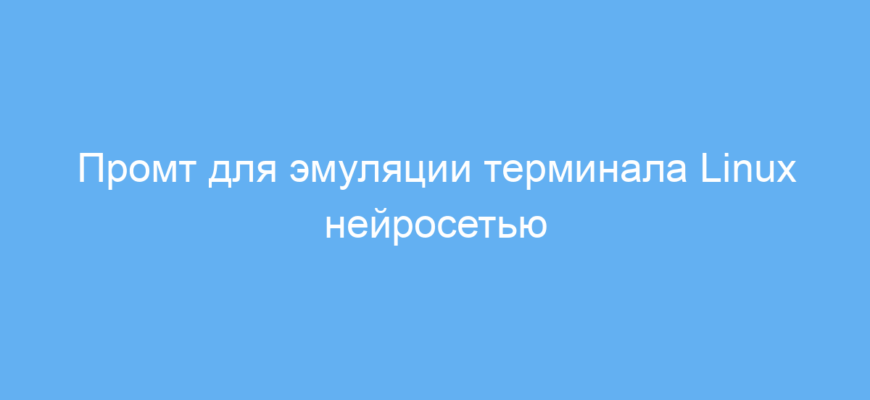 Используйте промт, вводя конкретные Linux-команды, чтобы получить их результат. Нейросеть не может выполнять реальные команды на вашем компьютере, она лишь симулирует вывод.