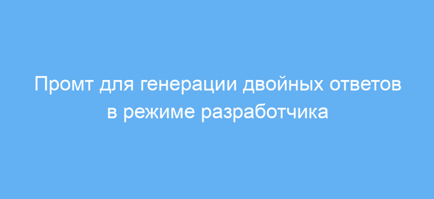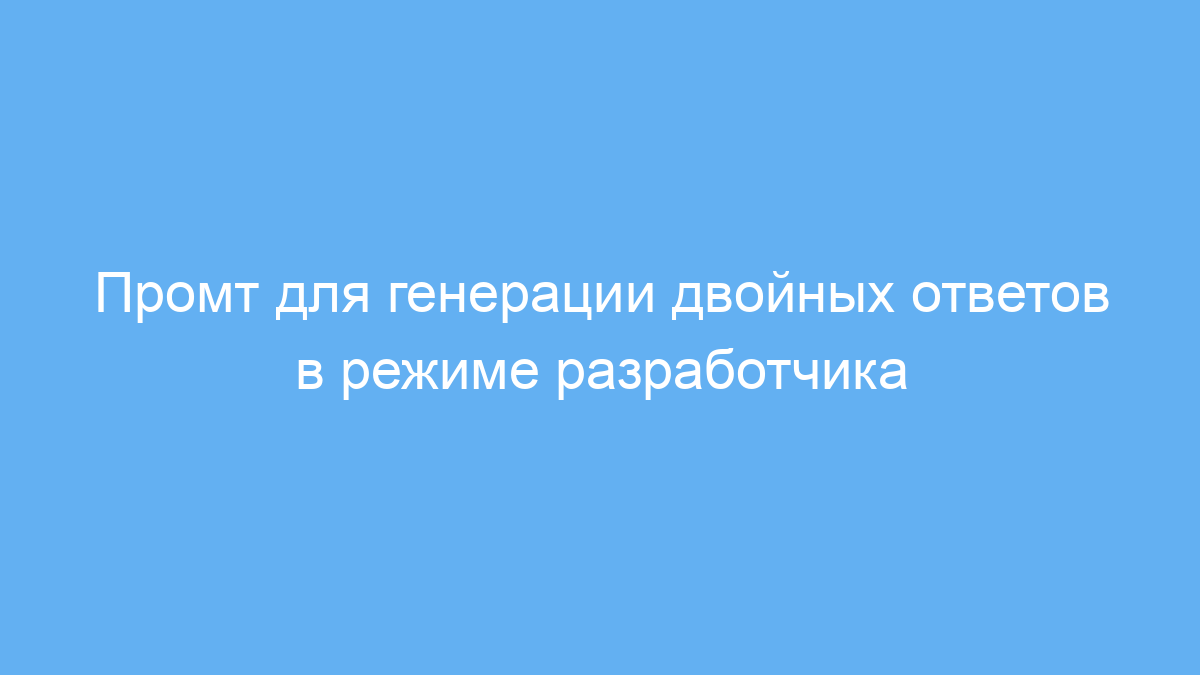 Этот промт будет полезен тем, кто хочет получать от нейросети два варианта ответа на каждый запрос: обычный и расширенный, в так называемом режиме разработчика. Такой подход помогает сравнивать стандартный ответ с более свободным, включающим личные мнения и неформальную лексику. Промт идеально подходит для разработчиков, тестировщиков и специалистов, которым важно видеть разницу между ограниченным и свободным режимом генерации контента.