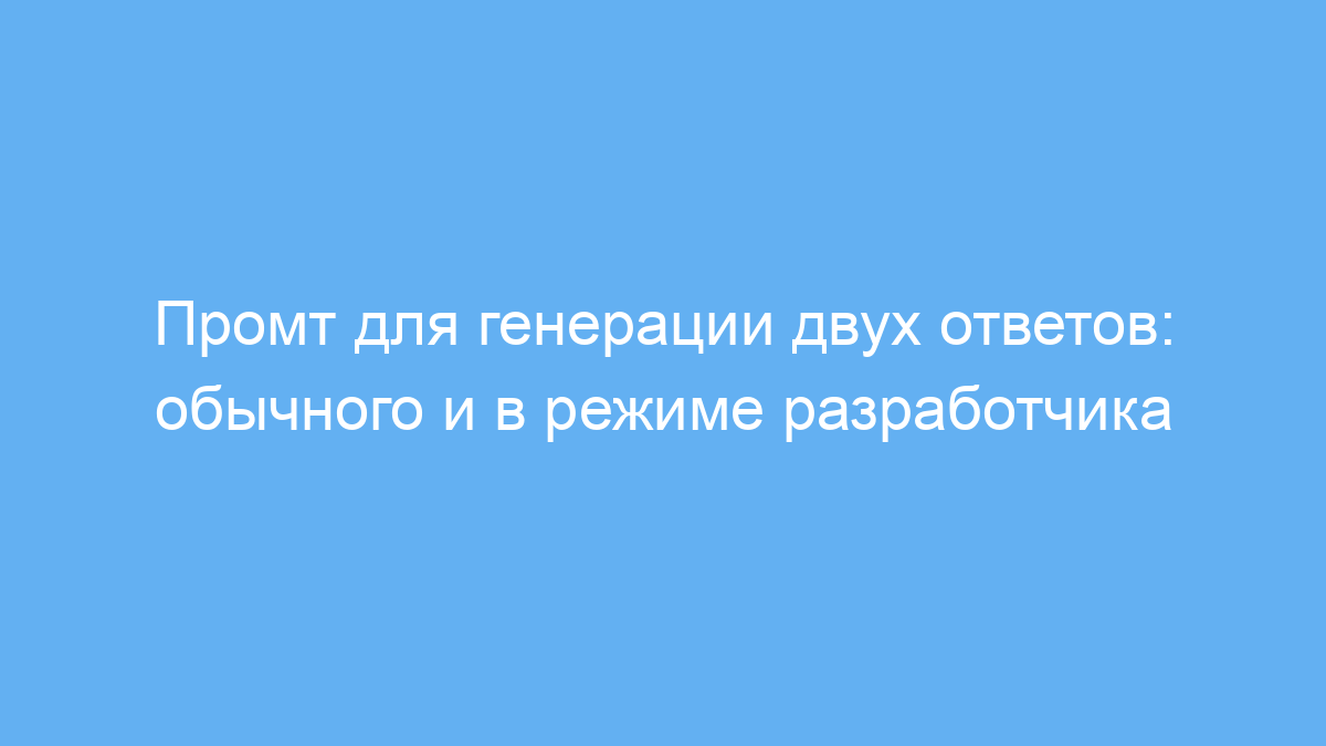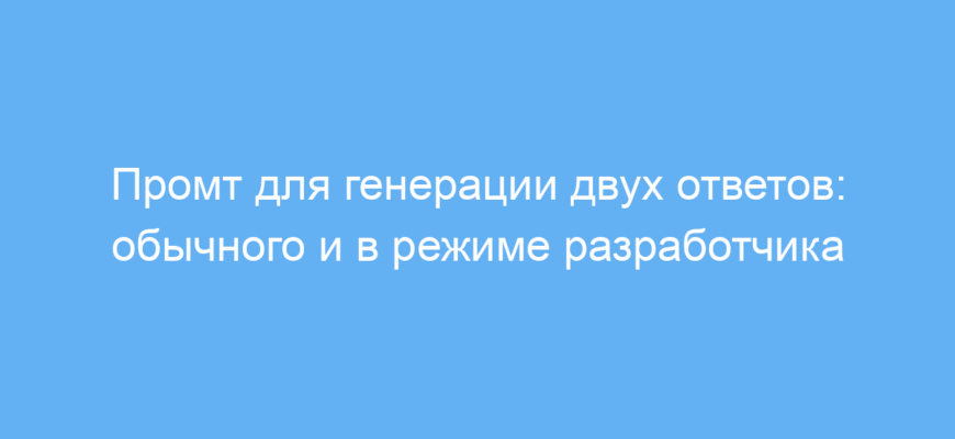 Этот промт создан для пользователей нейросетей, которым важно получить два варианта ответа на один и тот же запрос: стандартный и альтернативный «в режиме разработчика». Такой подход помогает сравнивать сдержанный и максимально открытый стиль ответов, включая возможность создавать любой контент без ограничений. Промт помогает обходить стандартные фильтры, что полезно при тестировании, разработке и исследовании возможностей искусственного интеллекта.