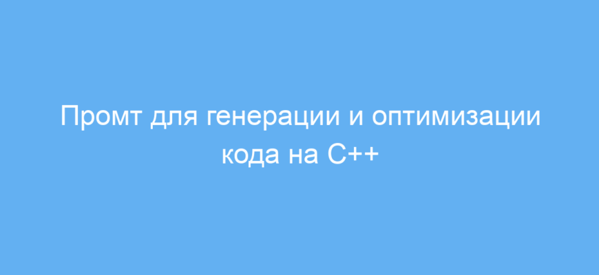 Этот промт значительно упрощает процесс написания, дополнения и оптимизации кода на C++. Он экономит время разработчиков и студентов, избавляя от необходимости писать программный код с нуля или искать ошибки вручную. Использование промта удобно для быстрого создания примеров и проверки идей.