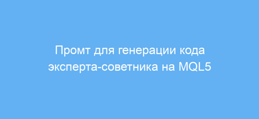 Используйте этот промт, если у вас есть понятная торговая стратегия и нужно автоматически получить код эксперта-советника для MT5.