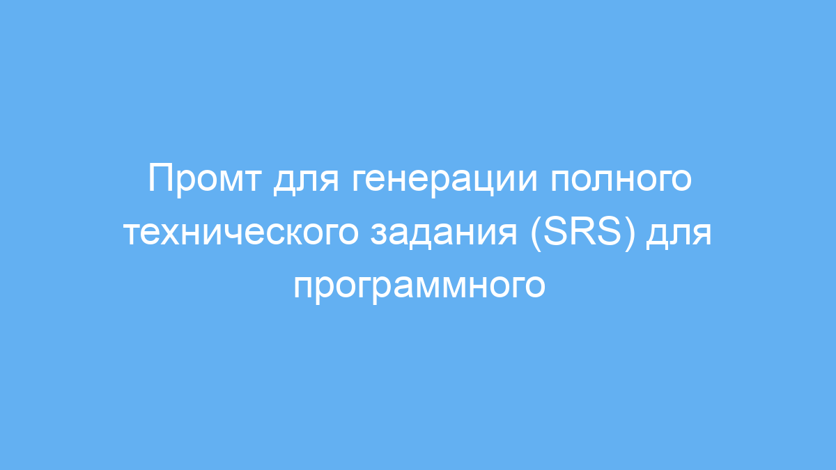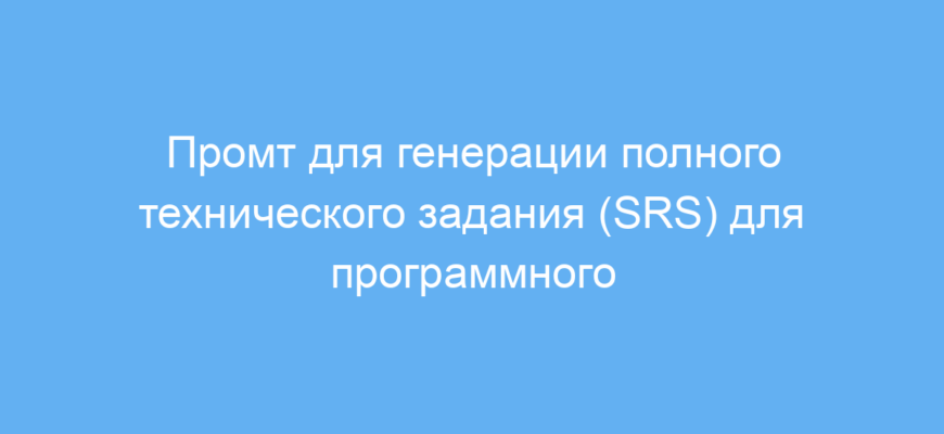 Этот промт предназначен для разработчиков, аналитиков и проджект-менеджеров, которые хотят быстро получить подробный документ технического задания (SRS) для программного продукта. Он помогает структурировать и оформить ключевые части ТЗ, такие как описание сценариев использования, диаграммы, и сценарии на Gherkin, с целью упрощения коммуникации внутри команды и с заказчиком.