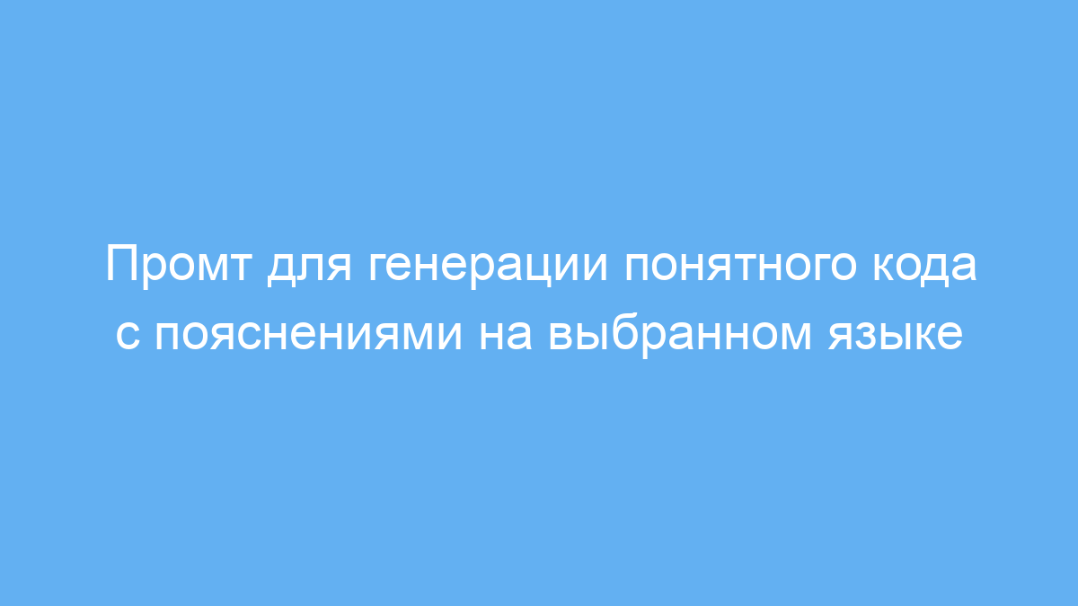 Этот промт значительно сокращает время и усилия при создании кода с подробными и понятными объяснениями. Особенно это полезно для тех, кто только начинает изучать программирование и нуждается в ясных пояснениях каждого шага. Плюс, он помогает получать структурированный и аккуратный код на любом языке по вашему выбору.