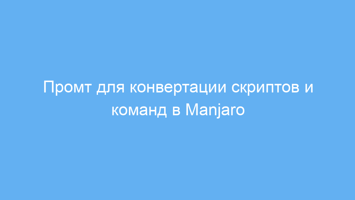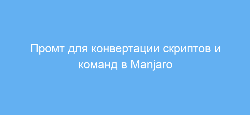 Этот промт предназначен для пользователей, которым необходимо преобразовать команды и скрипты, написанные для других операционных систем, например, Windows (batch, PowerShell) или Ubuntu, в команды, совместимые с дистрибутивом Manjaro Linux. Особенно полезен он для системных администраторов, разработчиков и IT-специалистов, которые работают с разными платформами и хотят быстро адаптировать свои установки и инструменты под Manjaro.