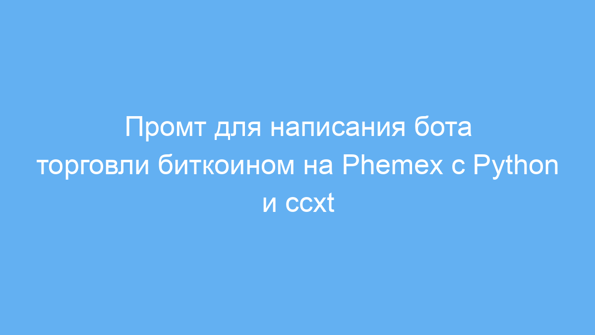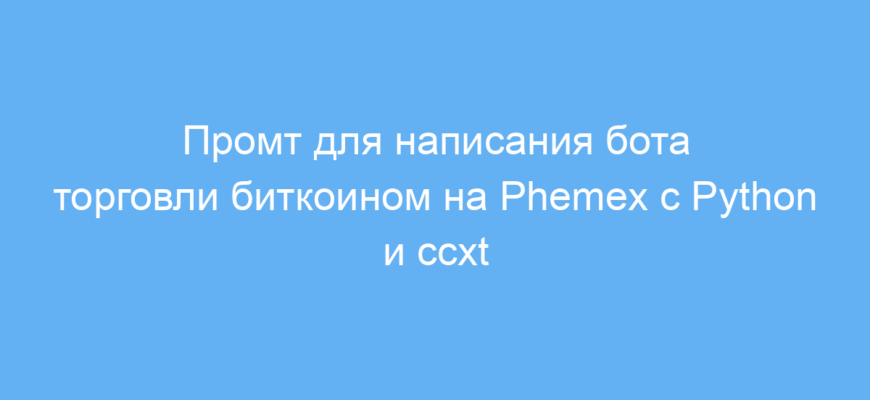 Этот промт помогает получить готовый, быстрый старт для создания торгового бота на Python с простой стратегией на основе скользящей средней для биржи Phemex. Вы экономите время на написании базового кода и избегаете рутинной работы. В дальнейшем можно дополнять код новыми функциями и адаптировать под свои нужды.
