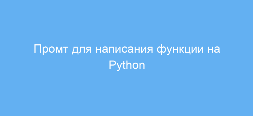 Этот промт помогает быстро получать качественный код функций на Python, ускоряя разработку и облегчая обучение. Вы сможете сосредоточиться на логике задачи, а нейросеть возьмёт на себя написание базовых конструкций кода.
