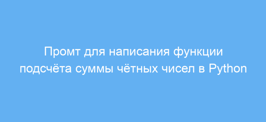 Этот промт создан для программистов, студентов и всех, кто изучает Python и хочет быстро получить рабочий код для решения конкретной задачи — подсчёта суммы чётных чисел в списке целых чисел. Подобная функция часто нужна при анализе данных, фильтрации чисел по признаку чётности и выполнении арифметических операций с выбранными элементами.