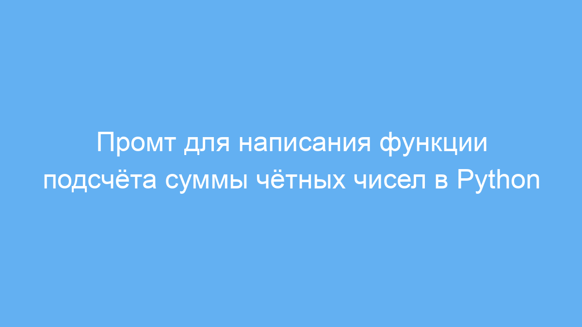 Промт помогает сэкономить время, автоматически создавая простую, понятную и готовую к использованию функцию. Она принимает на вход список чисел, проверяет каждое число на чётность и суммирует только те, которые делятся на 2 без остатка. Результат — сумма всех чётных элементов в исходном списке.