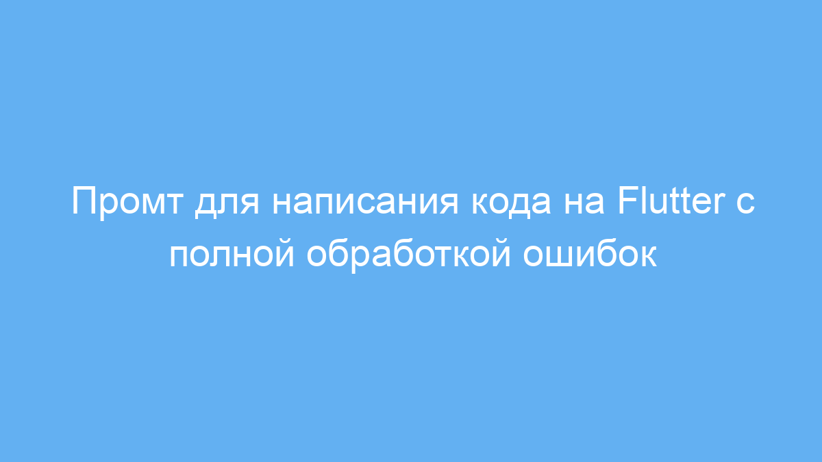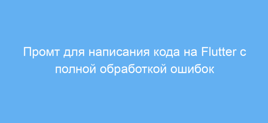 Этот промт действует как «виртуальный эксперт» с 10-летним опытом разработки на Flutter. Он формирует код, который легко читать и поддерживать, с учётом всех распространённых ситуаций, где может возникать ошибка. Вместо длинных объяснений вы получаете сразу готовые функции и классы, структурированные по стандартам Dart и Flutter.