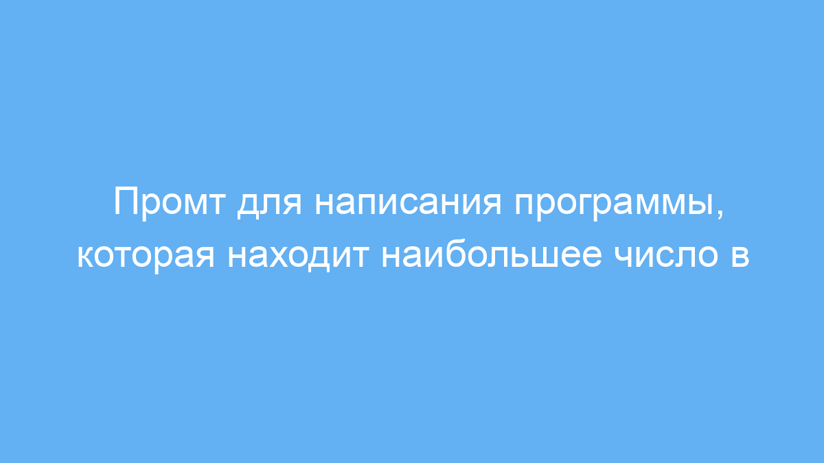 Этот промт экономит время и силы, быстро формируя базовую программу для поиска максимума в списке на трёх популярных языках программирования. Он полезен новичкам для обучения и разработчикам для быстрой генерации примеров и шаблонов.