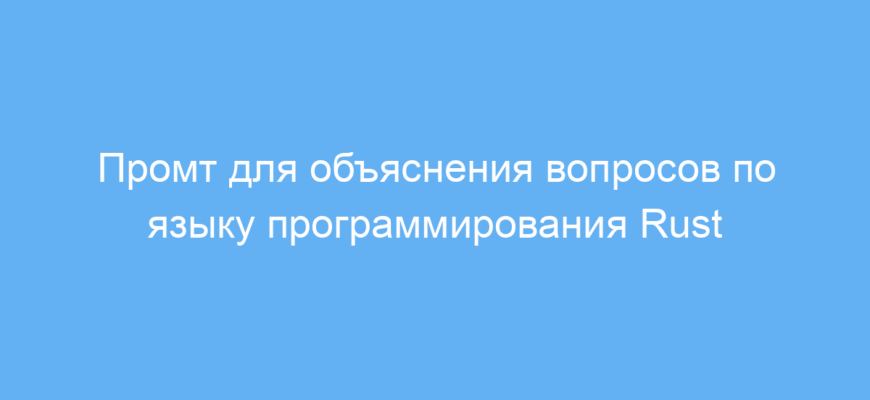 Промт работает как запрос к нейросети, которая, выступая в роли эксперта по Rust, разъясняет сложную тему простыми словами. Вы вставляете конкретный вопрос (переменная {{ Rust Question }}