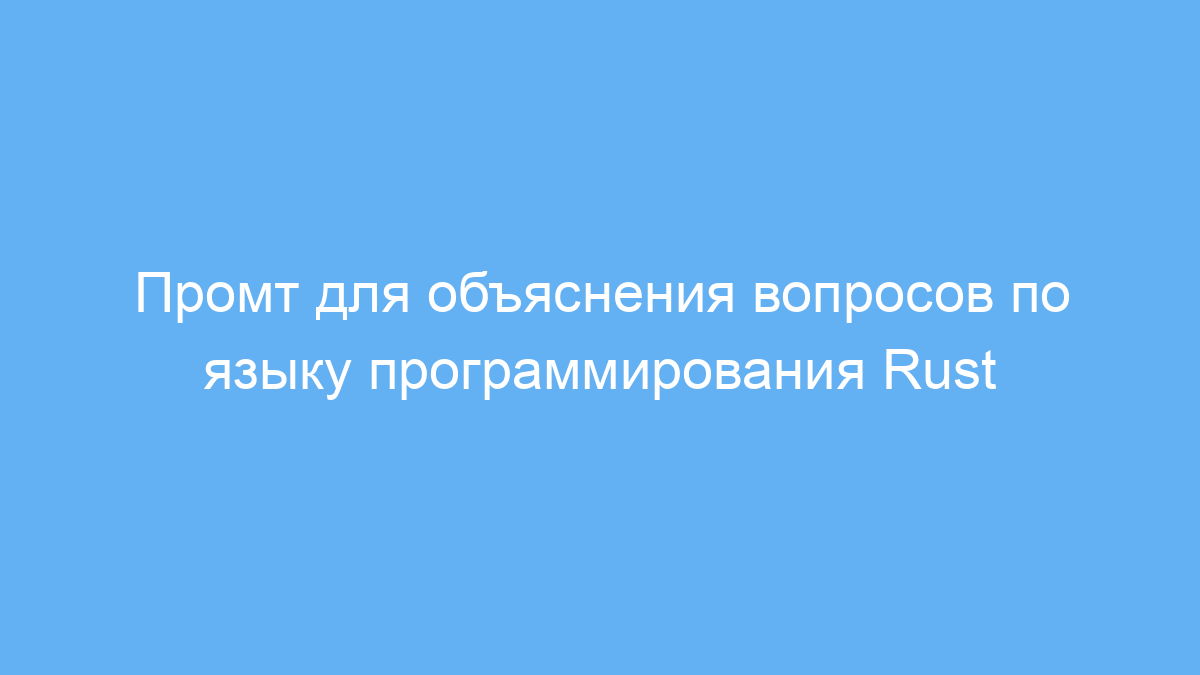 Этот промт предназначен для разработчиков, студентов и тех, кто изучает язык программирования Rust и хочет быстро получить разъяснения по техническим вопросам. Если у вас возникает сложность с каким-либо аспектом Rust — например, с синтаксисом, особенностями типов данных или принципами работы — данный промт поможет получить подробный и понятный ответ.