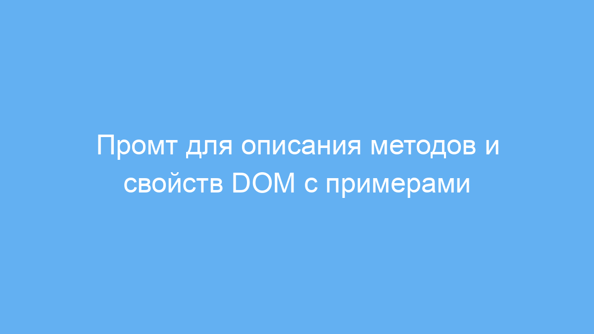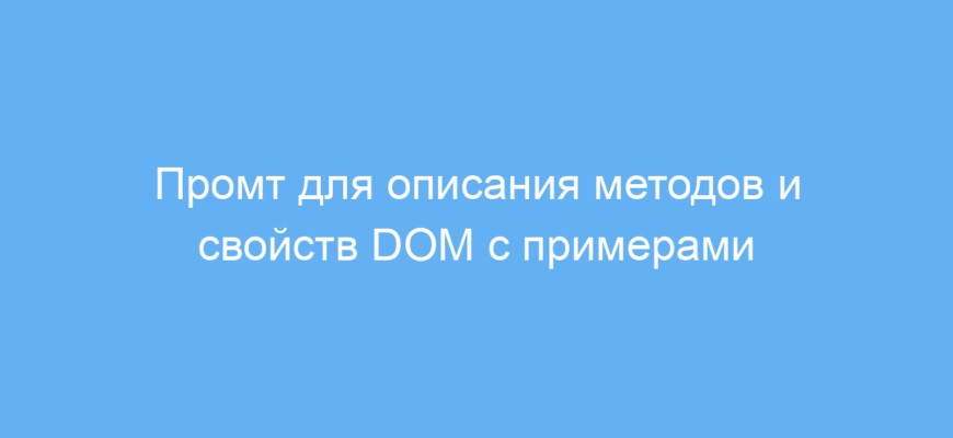 Принцип работы промта прост: модель принимает запрос на описание различных методов и свойств DOM, а затем генерирует структурированный текст с примерами использования, что облегчает понимание и применение информации на практике.