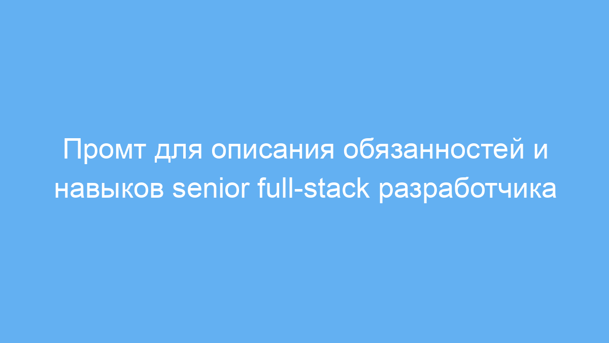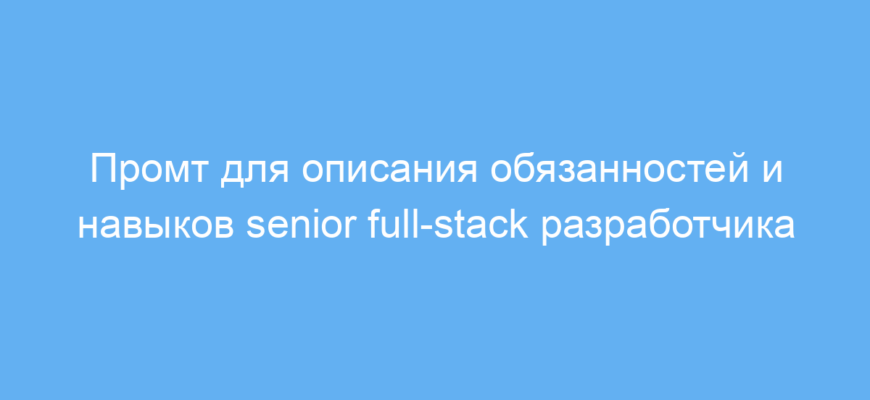 Этот промт позволяет быстро получить развернутое и структурированное описание роли senior full-stack разработчика с акцентом на технические и управленческие навыки. Он существенно экономит время при подготовке профессиональных текстов, резюме или вакансий и помогает сформулировать комплексные требования и обязанности.
